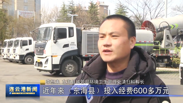 东海县城管局环境卫生管理处清扫科科长 李想来:近年来东海县投入经费600多万元购置机扫车、洒水车等中大型作业保洁车辆11台,在常态化人工保洁的基础上,全县29台保洁车辆对城区主次道路进行机械化清扫作业,科学细化县域内80余条主次道路保洁措施,并结合实际专门制定精细化保洁方案,保证每天不少于4遍冲洗,洒水降尘,确保城区道路机械化清扫率达到95%以上。