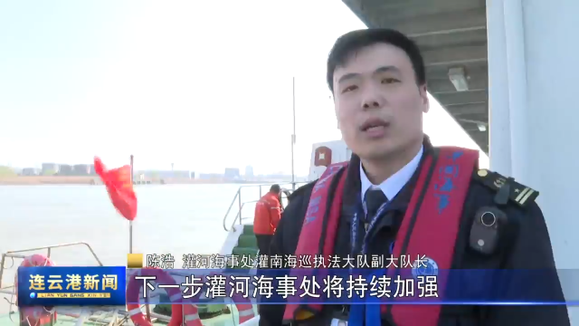 灌河海事处灌南海巡执法大队副大队长 陈浩:下一步,灌河海事处将持续加强联合执法力度和频次,多部门联动,保持对碍航养捕、非法捕捞等行为的高压态势,全力保障灌河航道安全畅通。