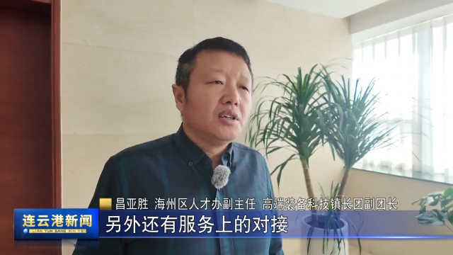 昌亚胜 海州区人才办副主任、高端装备科技镇长团副团长:首先这边融资政策会有相关基金公司进行对接,另外还有服务上的对接,包括场地,包括政策上的解读和上下沟通机制也都很畅通。