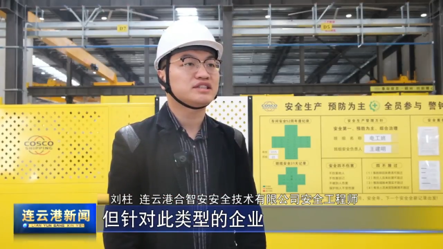 连云港合智安安全技术有限公司安全工程师 刘柱:经过我们的深入全面的检查,未发现威胁生产安全的问题,但针对此类型的企业,我们还是会做安全提示,请企业做好危化品管理与使用、定期校验安全监测设备。