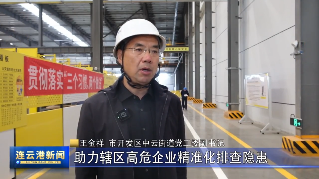 连云港远洋流体装卸设备有限公司制造厂房内,警示标语齐全,各项作业有序进行。安全生产专家、街道执法人员以及企业负责人,头戴安全帽,对可能存在的安全风险点进行详细排查,同时做好风险提示。