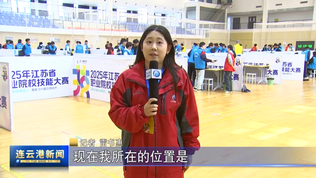 记者 雷书惠:现在我所在的位置是连云港职业技术学院的体育馆,大家可以看到选手们已经在聚精会神地进行比赛,我们一起去看一下吧。
