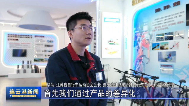 江苏省自行车运动协会会长、连云港神鹰碳纤维自行车有限公司副总经理 毕然:我们除了碳纤维自行车之外,像碳纤维羽毛球拍、碳纤维网球拍,包括后续国家也会大力推动冰上运动,它其实碳纤维的应用也是非常广、非常深的。我们后续在碳纤维冰球杆、碳纤维滑雪板,我们也会去加大我们的一些研发投入力度,去做好相关的一些产品,并且推向市场。