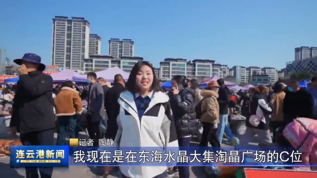 记者 陶静:我现在是在东海水晶大集淘晶广场的 C位,看看现在的阵仗--现在是早上的 8 点钟, 300 米长的摊位已经是挤满了人,摊位非常密集,目测肯定是超过了上百个。今天就带大家沉浸式感受一下,东海的水晶现在到底有多火?