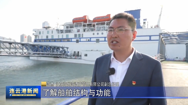 范杰 江苏海州湾酒店管理有限公司副总经理:通过研学活动,了解船舶结构与功能:以介绍驾驶台、机舱、甲板等区域的作用,结合实物演示。开展救生衣穿戴,结合船舶污水处理对海洋保护措施。模拟绳结编织、信号旗识别等实操活动。让青少年近距离感知航海科技的魅力,同时融入海洋环保理念,引导孩子思考可持续发展。