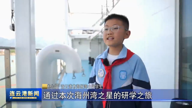 杨绍笛 连云港市海州湾小学学生:通过本次海州湾之星的研学之旅,我认识了很多关于海洋的知识。比如说旗语,我还来到了驾驶舱,看到了许多关于船的仪器和设备。