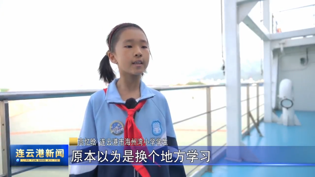 高忆晗 连云港市海州湾小学学生:原本以为是换个地方学习,却学到了许多书上没有的知识。我还去了甲板和趸船上学到了许多和船舶有关的知识,还学到了海洋自救相关知识。