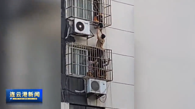 5月13号下午6点左右,连云港市区温侨绿苑小区一名两岁女童,不慎从5楼阳台坠落,卡在了4楼的防盗窗上,双脚悬空。危急时刻,多名热心群众、消防队员、120医护人员接力营救,最终女童顺利脱险。