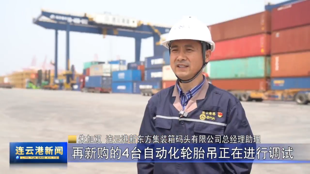 朱加双 连云港新东方集装箱码头有限公司总经理助理:目前,码头既有的4台轮胎吊的自动化改造,已实现单机自动化远控,新购的 4台自动化轮胎吊正在进行调试,未来这些自动化设备投入生产使用后,将持续提升集装箱作业的智能化水平和综合能力。