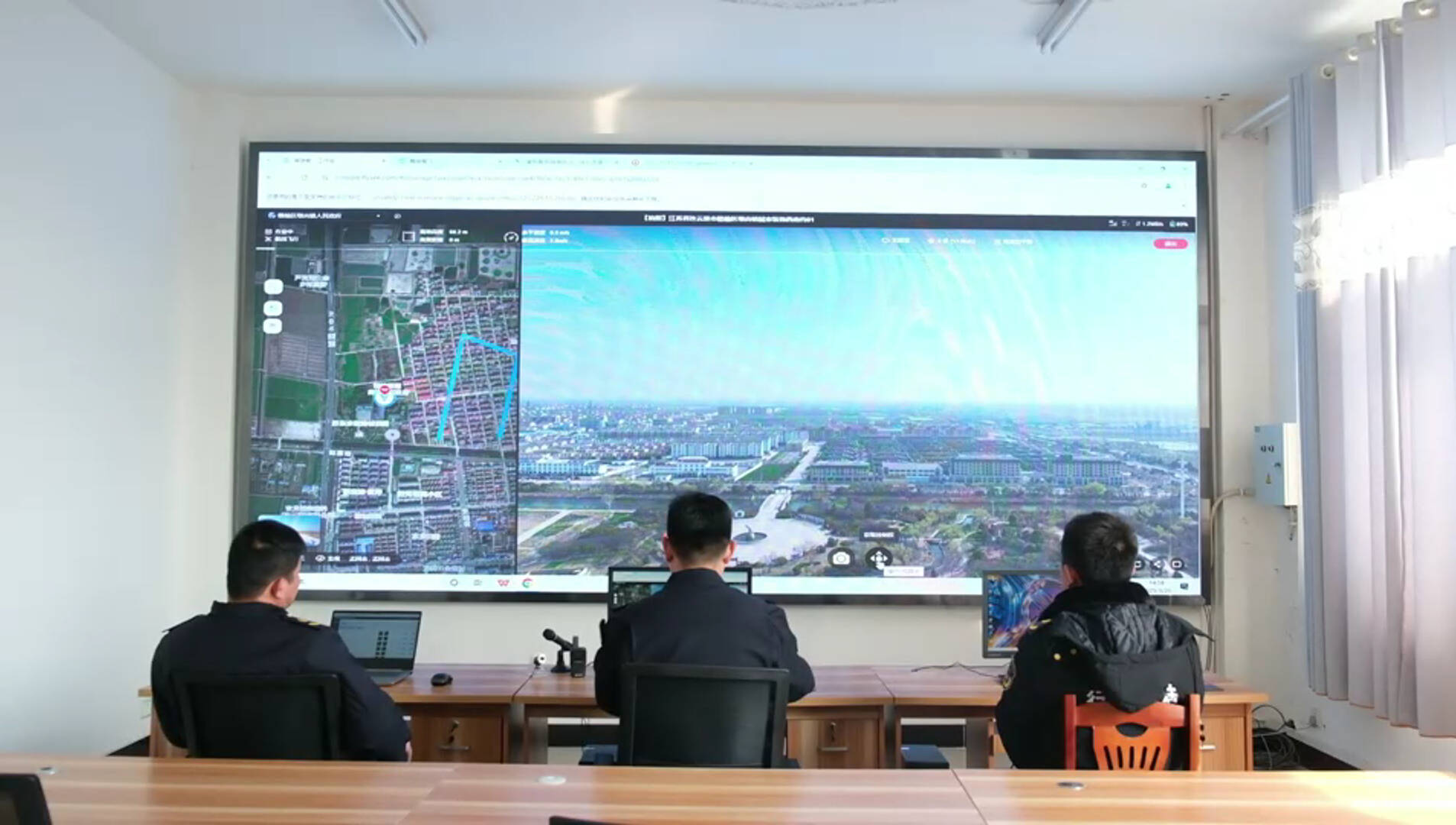 在赣榆区墩尚镇综合行政执法联动指挥中心,执法人员通过管控平台启动巡飞指令,无人机即刻按既定航线升空巡查,即时将发现的疑似违建线索上传至市违建监管系统,生成带有坐标、全景照片的电子工单,分发执法人员现场核查。