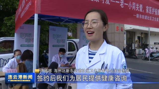 许娜娜 海州区新东街道社区卫生服务中心主治医师:签约后我们为居民提供健康咨询、用药指导慢病随访,协调转诊等贴心服务,通常我们会加微信或电话,他们有什么问题,可以及时和我们联系,签约后在中心就诊还有优惠,欢迎大家积极签约,有健康问题随时找我们。