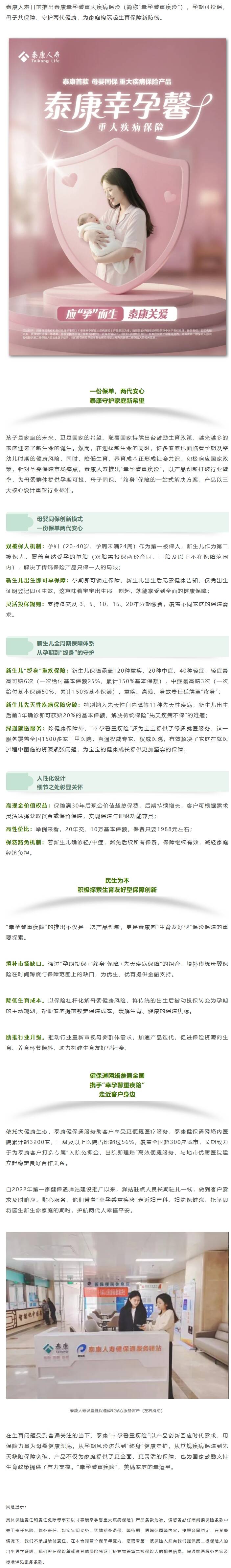 泰康人寿推出幸孕馨重疾险,构筑生育保障"馨"防线
