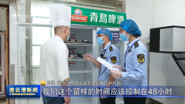 【现场声】海州区市场监督管理局餐饮科科长 孙建:我们这个留样的时间应该控制在 48 小时,重量不低于125 克,最好是 200 克以上,我们冰箱的冷藏的要求是冷藏 0 到 8 度。