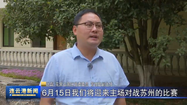 花果山景区党委委员 管理处副主任 张磊:6月15日,我们迎来主场对战苏州的比赛,景区又推出了面向苏州市民免门票的优惠政策。我们也希望江苏城市兄弟及全国的小伙伴到连云港,到花果山了解这里的人文,寻找美猴王,探秘花果山。