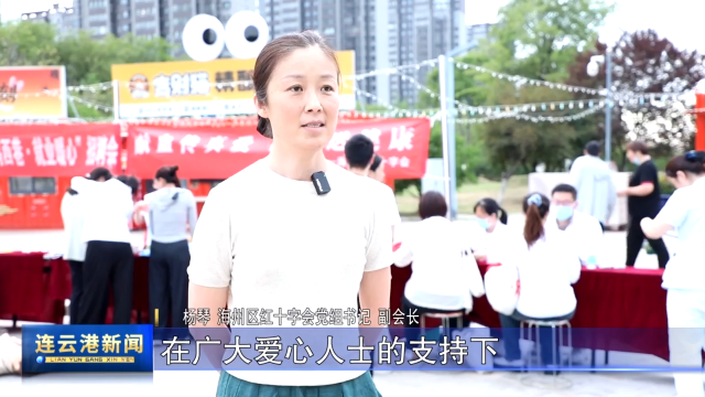 海州区红十字会党组书记、副会长 杨琴:在广大爱心人士的支持下,无数生命因及时输血得以延续。今天开展“献血传真爱、博爱送健康”主题活动,希望能吸引更多爱心人士加入献血队伍。我们也将继续致力于保障献血安全、优化服务流程,做好生命的“守护者”和爱心的“传递者”。