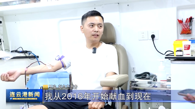 海州区红十字会联合多家医疗机构在西凤社区开展"献血传真爱、博爱送健康"主题宣传活动。在采血车旁,不少市民在了解相关知识后,主动挽起衣袖参与献血。来自江苏恒瑞医药股份有限公司职员王瑜是献血的老面孔,在2024年还曾经捐献过造血干细胞。