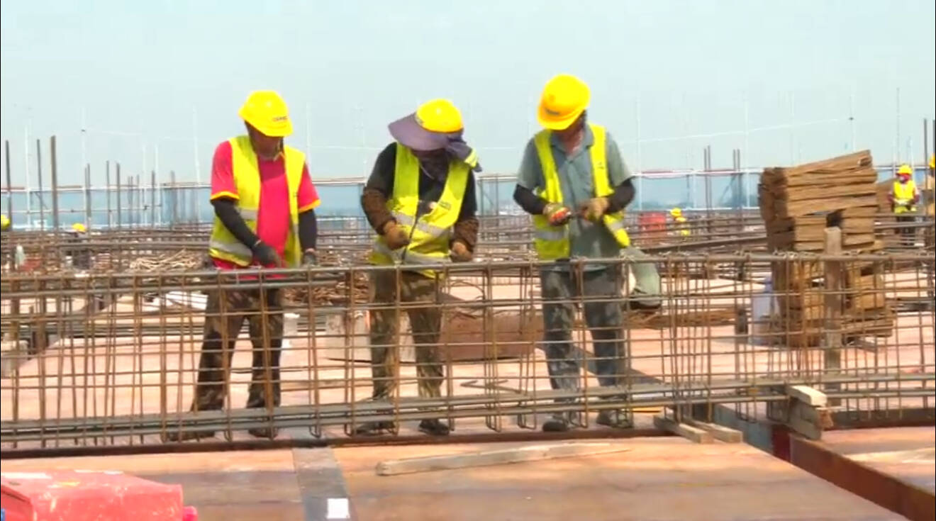 贺克雄 项目现场施工负责人:每天早上5点到10点上班,下午是3点以后上班,7点下班,避开每天这个高温时间段。我们现场给工人配备了防暑防中暑药,有人丹、藿香正气水这些,现场也会给工人配备热水,还有一些矿泉水给他们现场解渴。第三个是现场配备洒水车,增加地面的一个洒水措施,来降低地面的温度。