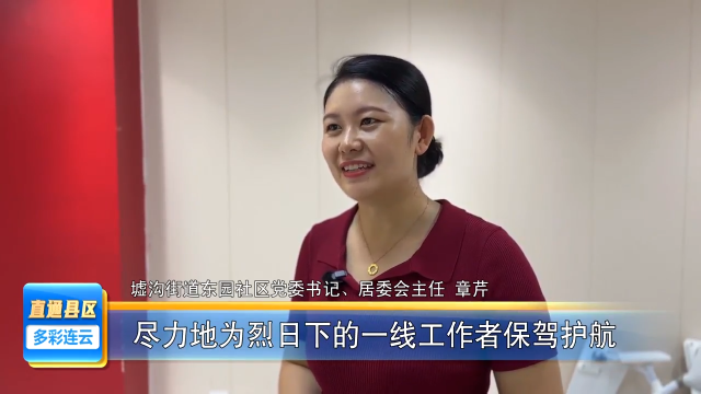 连云区墟沟街道东园社区党委书记、居委会主任 章芹:我们驿站为大家准备了冰袖、绿豆汤等降温物品,尽力地为烈日下的一线工作者保驾护航,让小驿站体现大关爱,接下来我们也将持续收集劳动者的需求,动态优化服务内容,让驿站成为传递城市温暖的暖心坐标。