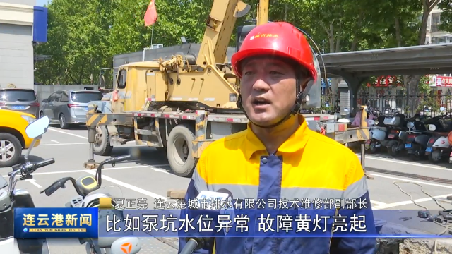 连云港城市排水有限公司技术维修部副部长 夏正亮:我们接到智慧排水平台发现的问题,及时到达现场。比如泵坑水位异常、故障黄灯亮起可能预示泵站水泵故障,我们在现场及时进行检查和维护,避免故障进一步恶化导致泵站无法正常排水。