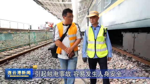 上水工 庞祥斌:是的,因为上面是高压电,我们把水管接好以后,要防止水管乱溅水,防止溅到高压电,引起触电事故,发生人身安全。