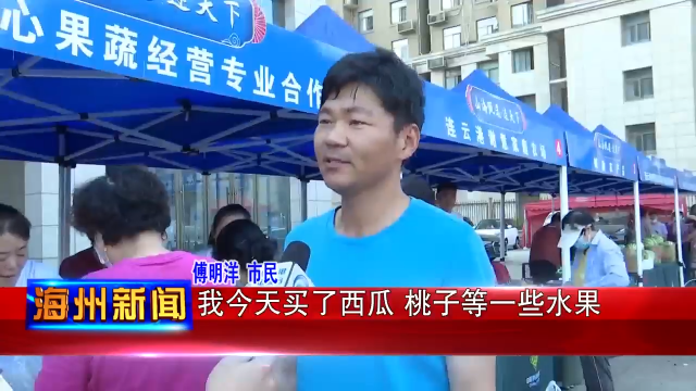 市民 傅明洋:我今天买了西瓜、桃子等一些水果,我觉得今天展销会的水果很新鲜,是我们连云港身边的一些农场生产的,我希望以后这种活动多搞一些。