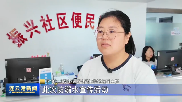 海州区新东街道振兴社区副主任 李怡含:此次防溺水宣传活动,让孩子们对防溺水,有了更加直观的认识,提高了辖区未成年人,应对紧急情况时的自救能力,在辖区形成了人人讲防溺水,人人知防溺水,人人参与防溺水的良好氛围,也让孩子们能够度过一个安全快乐的暑假”