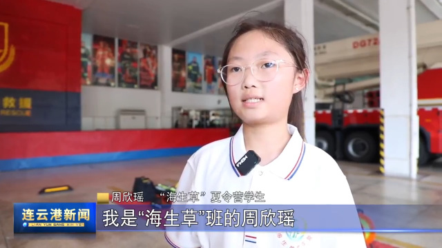 周欣瑶 海生草夏令营学生:我是“海生草”班的周欣瑶,今天在消防支队消防员叔叔们跟我们讲解了很多消防知识,以前只是在书本上看到过这些知识,现在这些书本上的内容都变得生动了起来,我觉得受益匪浅。