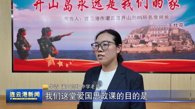 灌云高级中学老师 华青:我们这堂爱国思政课的目的是引导中学生坚定理想信念,将个人奋斗融入强国伟业,激励广大学生以王继才夫妇为榜样,勤奋学习,勇担时代重任,为实现中华民族伟大复兴而不懈奋斗。