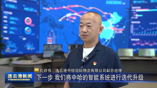 孔祥伟 连云港中哈国际物流有限公司副总经理:下一步,我们将中哈的智能系统进行迭代升级,提升我们系统生产的智能化,进一步提升我们国际班列的装卸效率。