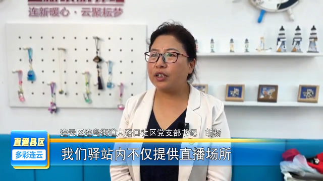 连云区连岛街道大路口社区 党支部书记 胡杨:我们驿站内不仅提供直播场所,饮水充电等基础服务,区委社会工作部还为网络主播等新就业群体开展技能培训,我们聚焦网络主播的户外创作需求和游客在旅途中的实际不便,提供贴心的续航服务。
