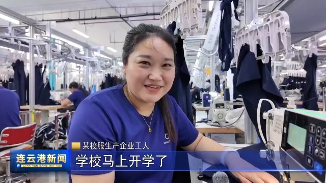 某校服生产企业工人:学校马上开学了,我们按公司规定赶制校服订单,让学生在开学之前都能穿上校服。
