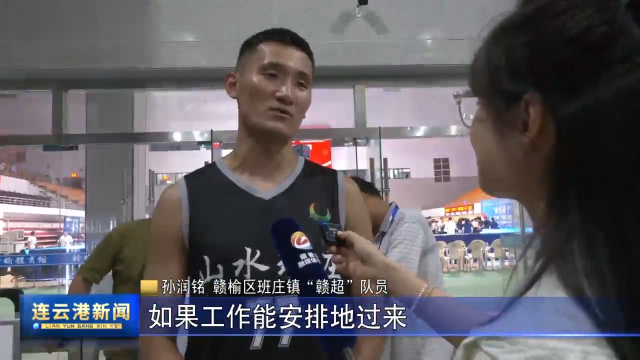 赣榆区班庄镇“赣超”队员 孙润铭:我们是从外地回来的,我们的队友都非常认真,包括教练,教练的部署,我们都是认真的在执行,打到最后也很精彩,我们也给众奉献了一个相对我个人觉得比较精彩的比赛。如果工作能安排的过来,明年我一定会回来的。