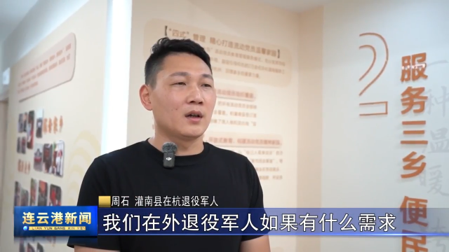 【同期声】灌南县在杭退役军人 周石:我们在外退役军人如果有什么需求可以到这里(寻求帮助),我们也把这里当作我们退役老兵的家,让我们在异乡感到有了靠山。
