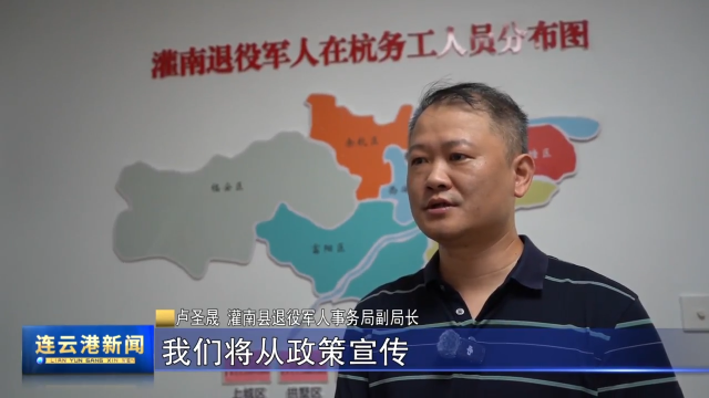 【同期声】灌南县退役军人事务局副局长 卢圣晟:我们将从政策宣传、就业创业、帮扶纾困、权益维护等方面用心用情用力,推动异地退役军人服务工作常态化、规范化、制度化,打通(灌南)在杭州服务退役军人的“最后一公里”。