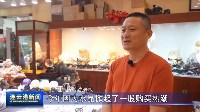 某商户老板 窦华军:今年因为水晶掀起了一股购买热潮,我们店里销售的手链,这些各式各样的水晶制品比往年销售上浮40%左右。