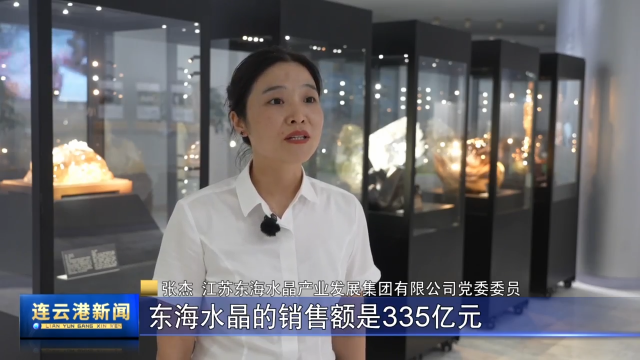 江苏东海水晶产业发展集团有限公司党委委员 张杰:(今年)1到7月份,东海水晶的销售额是335亿元,电商销售额是230亿元。大家所看到的这个水晶城虽然有的是以线下销售为主,其实每一个线下销售它都有线上的电商平台,有可能是1688、淘宝、或者是抖音都有。