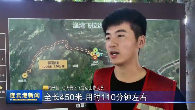 渔湾景区飞拉达工作人员 顾子恒:为了响应游客需求,我们飞檐线于8月15号正式开始营业,全长150米,用时110分钟左右。其中最具有特色的是我们的网红爱心桥,具有浪漫的同时更加具有挑战性。