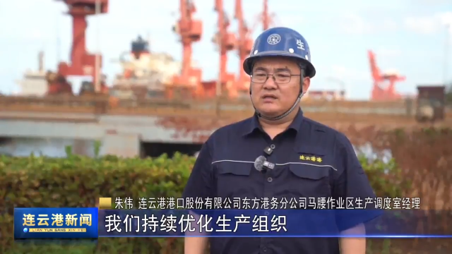 连云港港口股份有限公司东方港务分公司马腰作业区生产调度室经理 朱伟:全月累计完成开普型船舶作业11艘次,创下今年以来开普船作业量的新高,充分彰显了公司高效处理大型船舶的卓越运营能力和组织水平。