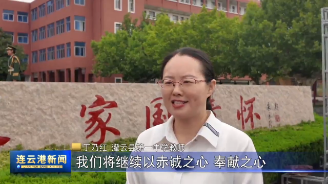 灌云县第一中学教师 丁乃红:我们将继续以赤诚之心、奉献之心、仁爱之心投身教育事业,恪尽职守,潜心育人,不负期望,为学生的成长和学校的发展贡献全部力量。