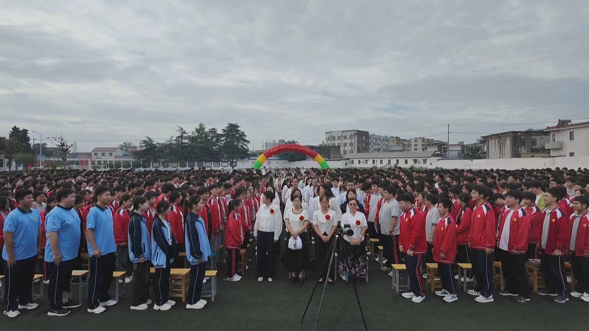 在灌云县第一中学,全体师生齐聚学校运动场,召开教师节表彰大会。