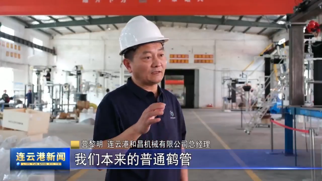 连云港和昌机械有限公司总经理 营黎明:我们本来的普通鹤管就是手动驱动或者液压气动驱动,现在我们加入了智能化的概念,这个鹤管有自己的“眼睛”,有自己的“大脑”思考,鹤管能够找准自己的目标,通过思考、通过运动,通过计算、运动算法,鹤管自主的能够进行自我工作,是这么一个智能化的发展,它的效率更高了,对安全性来讲更好了。