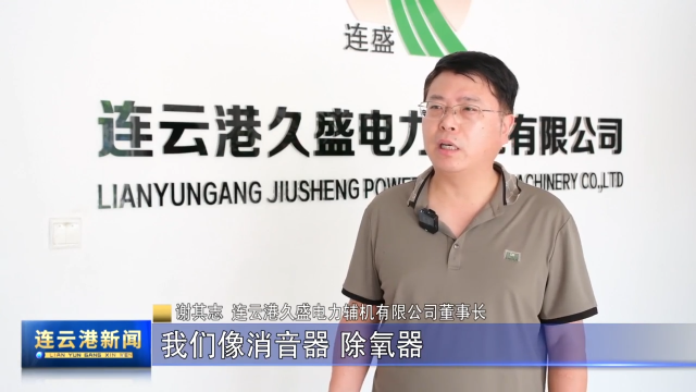 连云港久盛电力辅机有限公司董事长 谢其志:我们像消音器、除氧器,像胶球清洗这些产品,目前在行业里面还是很知名,像消音器我们目前市场占有率能够达到 30% 以上,在国内这个生产量还是比较多的,总量能达到 1000 多台,我们不断引进一些高端的设备,引进一些专业人才,包括在企业管理方面,我们不断进行创新,为未来企业向更高的空间(发展)提供更坚实的基础。