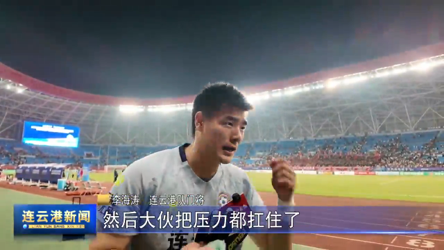 连云港队门将 李海涛:这场球也很关键,因为也涉及到我们下一步应该怎么走,然后大伙把压力都扛住了,球迷们也非常给力,谢谢大伙,真的。