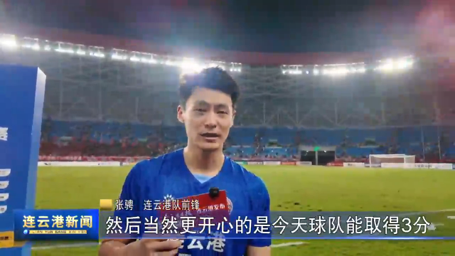 连云港队前锋 张骋:首先就是很开心今天能够进球吧,然后当然更开心的是今天球队能取得3分,因为这个3分对我们来讲特别重要,然后后面的比赛我们依然不能松懈吧,还是要全力以赴。