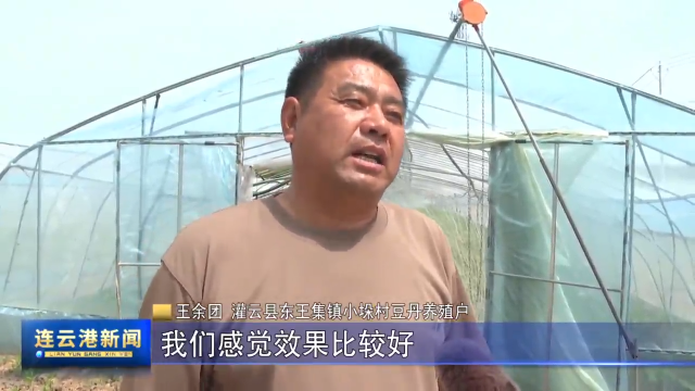 灌云县东王集镇小垛村豆丹养殖户 王余团:原来我一直在外面打工,考虑家里老人岁数比较大,要照顾老人,村里帮我们流转了七八十亩地,我们就开始豆丹养殖,通过去年养殖,我们感觉效果比较好,净利润赚了20多万,今年我们又继续扩大规模,养殖有接近100亩地。