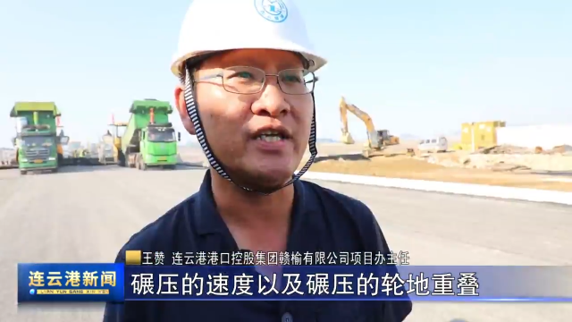 王赞 连云港港口控股集团赣榆有限公司项目办主任:采用电脑控制,碾压的变速、碾压的速度,碾压的轮地重叠,可以做到精准控制,此外无人摊铺技术较常规摊铺在安全上也有了可靠的保障,当人员进入摊铺区域,机械会自动停止。