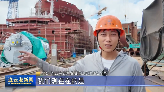 连云港五洲船舶重工安环部安全员 王杰:我们现在看到的是3号油化船和4号油化船。我们这边的油化船标配了5名安全员,每条船上两个人,地面上1个安全员在下面。每个工人只要进入我们的作业区,所有的防护用品都要佩戴好,确保我们现场做到第一。我们现场的安全员一直是在现场巡视的,为了把现场管控好,发现隐患要立改,保证我们的现场作业安全的进行下去。