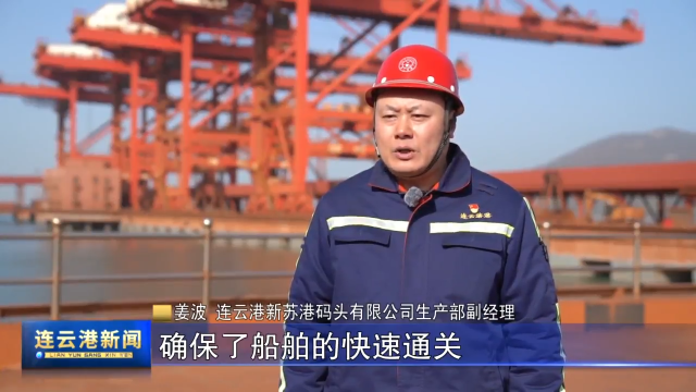 姜波 连云港新苏港码头有限公司生产部副经理:依托推行精细化、个性化的作业方案,生产能力不断提升,总结提炼了专属操作法,持续提升卸船速率;稳步推进码头设备和流程的自动化改造,为效率提升注入新动力;联合口岸单位,通过"即靠即检"等措施压缩非作业时间,确保了船舶的快速通关与无缝衔接作业。