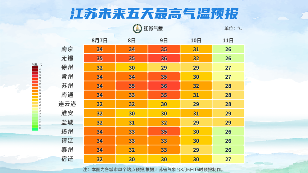 8日多云转阴,局部地区有阵雨或雷雨,东到东南风3到4级,气温26℃到32℃;
