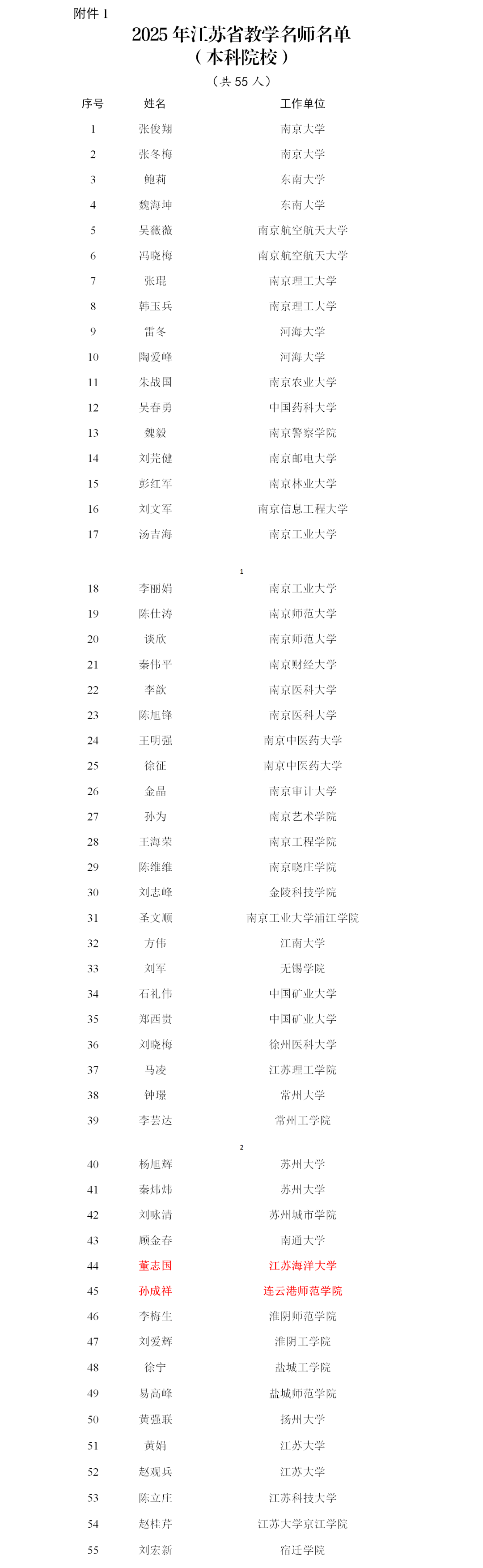 祝贺连云港这些老师! 2025-11-11 11:02:53 11月10日江苏省教育厅发布2025年江苏省教学名师入选名单公示连云港多名老师入选全部名单如下👇2025年江苏省教学名师名单(本科院校)2025年江苏省教学名师名单(职业院校)2025年江苏省教学名师名单(幼儿园、中小学校)来源:江苏省教育厅网站(版权归原创所有,如有侵权,请及时联系我们删除)